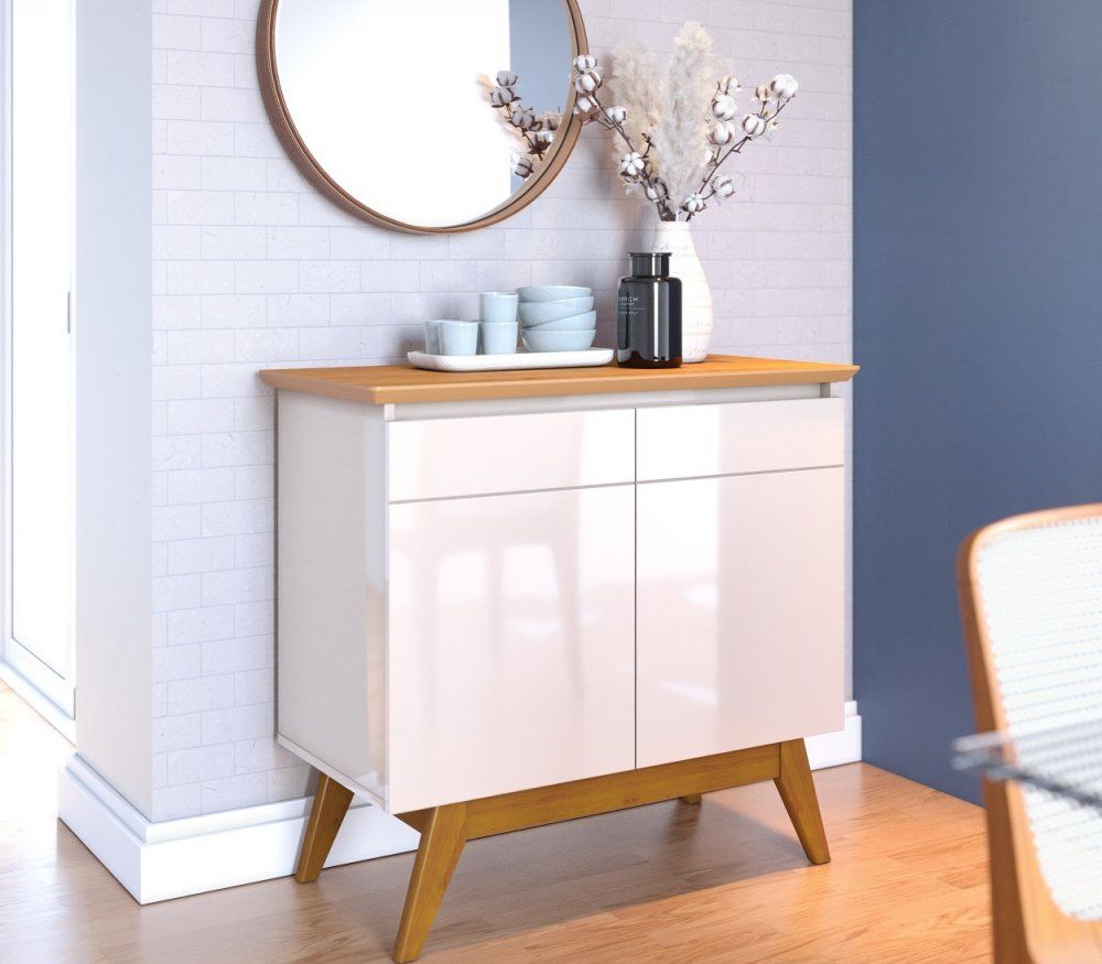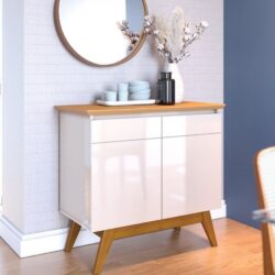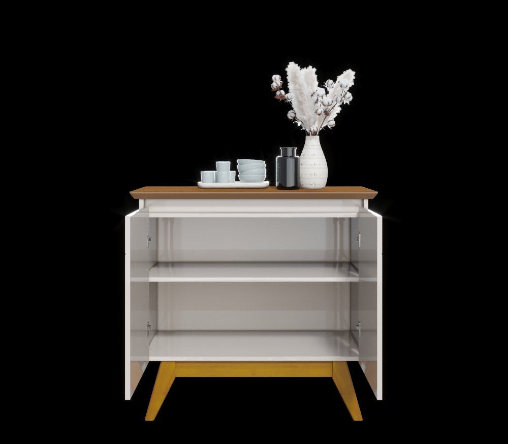 Este Buffet é a solução ideal para ambientes que necessitam de um móvel de apoio elegante, mas com dimensões otimizadas. Seu design se destaca pela qualidade do tampo e pela estrutura sólida apoiada em madeira maciça.