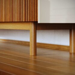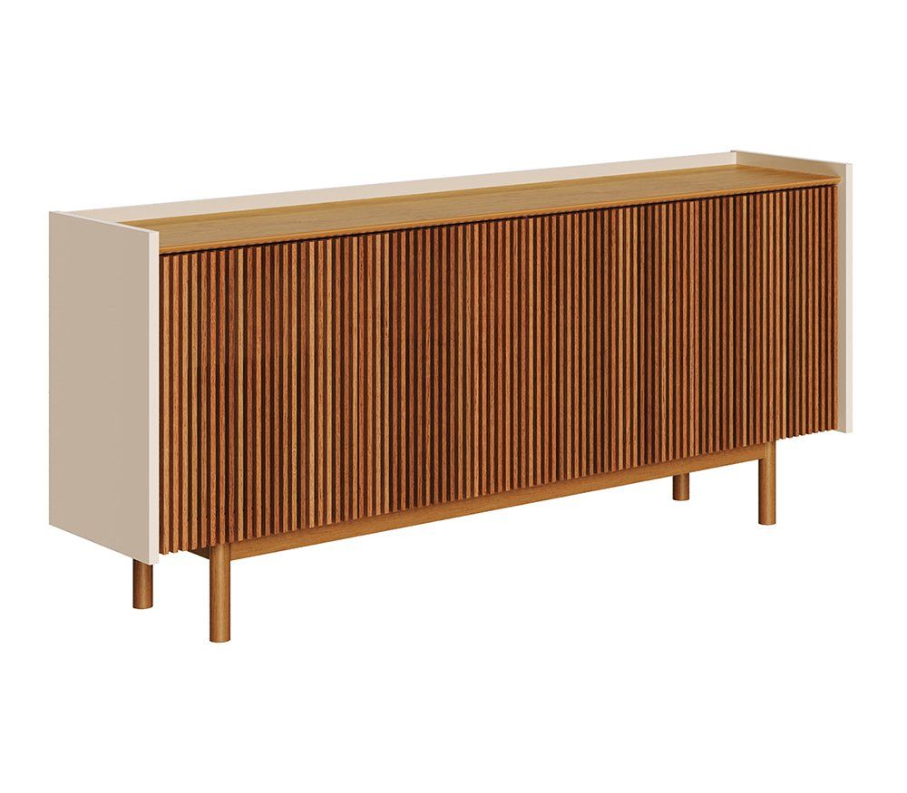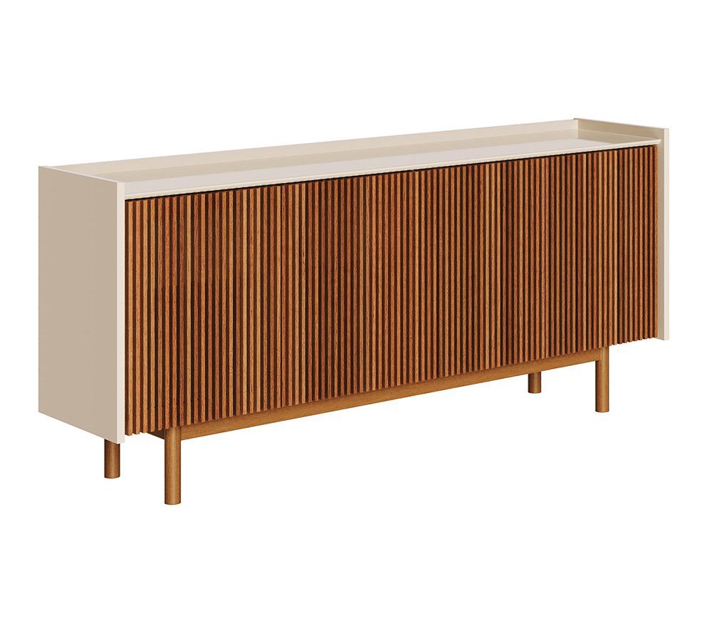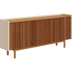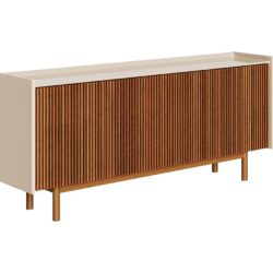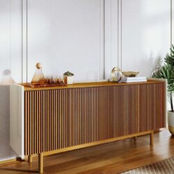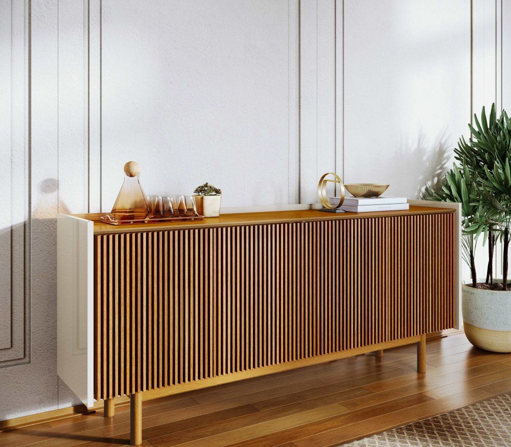 Este Buffet é uma peça de alto padrão que combina a estética artesanal das ripas de madeira com a funcionalidade moderna. Ideal para salas de jantar ou livings que buscam elegância e qualidade superior.