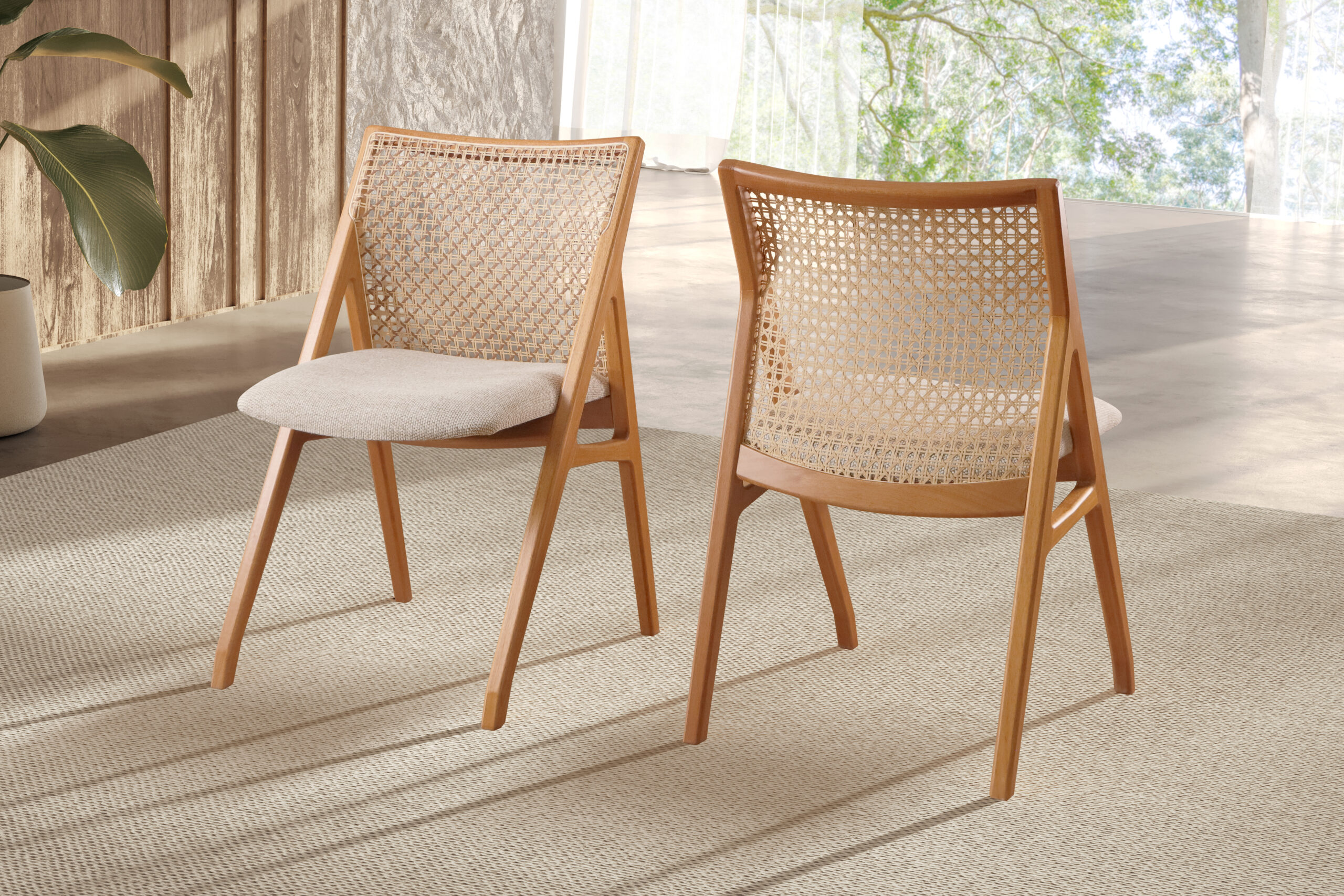 Personalize a cadeira com acabamentos que realçam a beleza natural da madeira maciça: