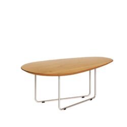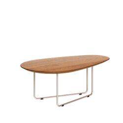 Esta mesa de centro é uma peça de design contemporâneo que se destaca pelo contraste elegante entre o calor da madeira maciça e a modernidade dos pés em metal. É ideal para livings que buscam um visual sofisticado com toques de design industrial.