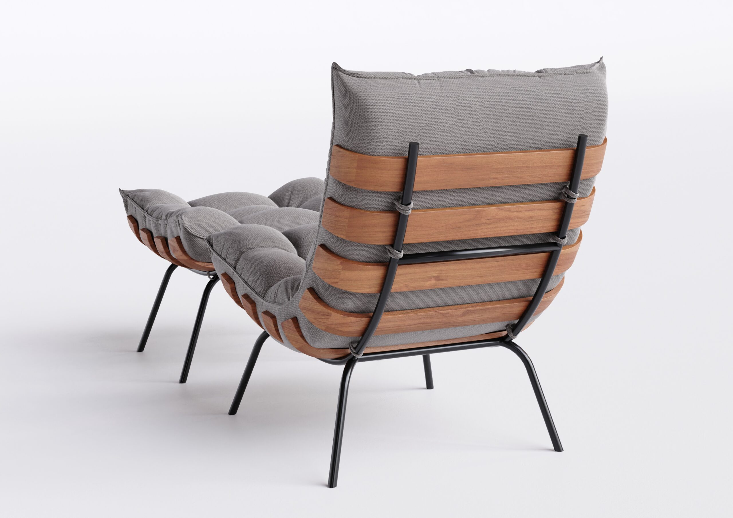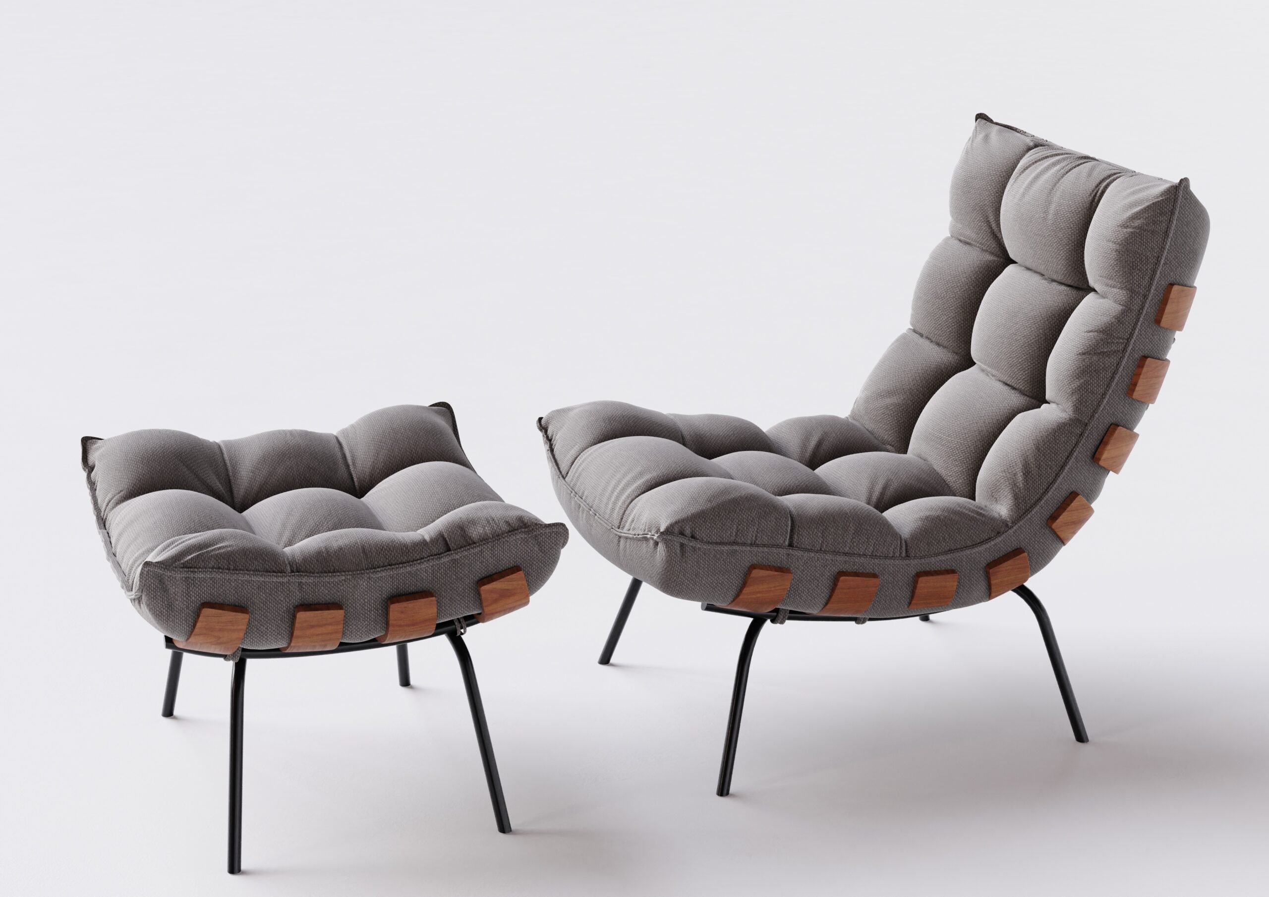 A Poltrona M06 é uma releitura elegante de um clássico do design mundial, famosa por seu visual marcante e aconchegante. Seu design, com ripas curvas em madeira e almofadas generosas, cria uma estética escultural e convidativa. É a escolha perfeita para quem deseja unir a história do design, conforto extremo e personalidade no ambiente.