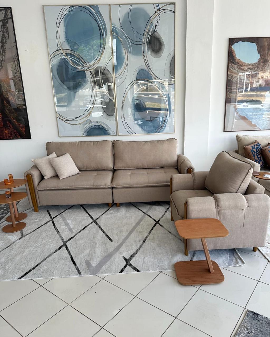 Eleve o nível da sua sala com um sofá que une design sofisticado e o máximo de conforto. Pensado para ser a peça central do seu living, este estofado garante durabilidade e um toque de luxo.